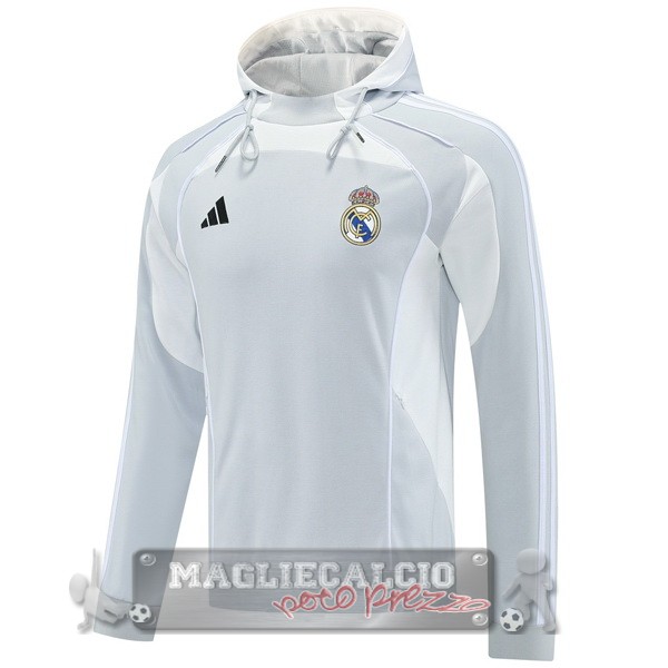 Felpa Cappuccio Real Madrid 2025 2026 Grigio Bianco