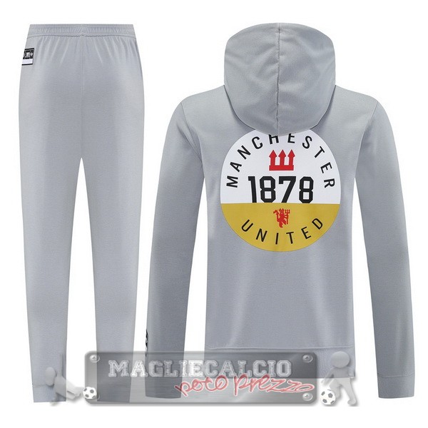 Giacca Set Completo Felpa Cappuccio Manchester United 2025 2026 Grigio