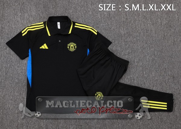 • Manchester United Nero Giallo Maglia POLO Set Completo 2025 2026