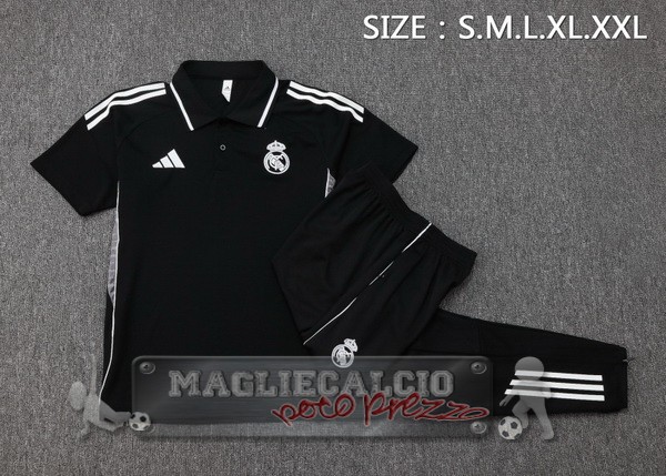 • Real Madrid Nero Maglia POLO Set Completo 2025 2026