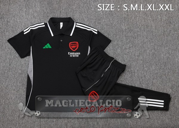 Set Completo Arsenal Maglia POLO 2025 2026 Nero Rosso Verde