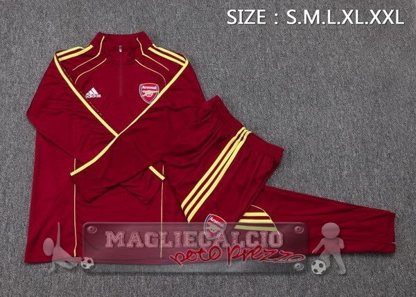 Set Completo Felpa Allenamento Formazione Arsenal 2025 2026 Rosso Giallo