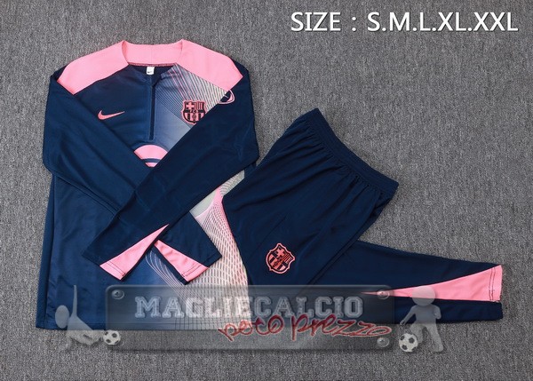 Set Completo Felpa Allenamento Formazione Barcelona 2025 2026 Blu Navy I Rosa