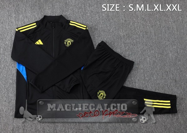 Set Completo Lunga Zip Giacca Manchester United 2025 2026 Nero Giallo Blu