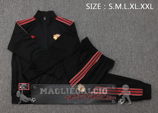 Set Completo Lunga Zip Giacca Manchester United 2025 2026 Nero III Rosso