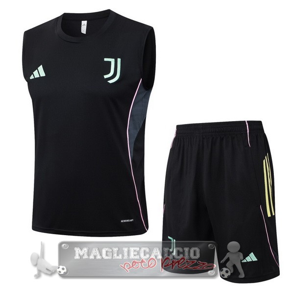 Set Completo Maglia Formazione Senza Maniche Juventus 2025 2026 Nero Rosa