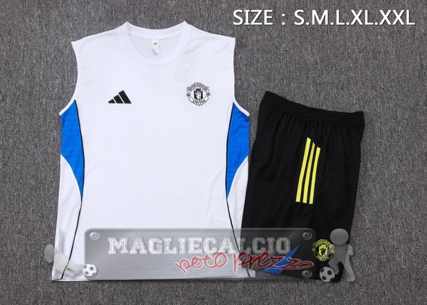 • Set Completo Maglia Senza Maniche Formazione Manchester United 2025 2026 Bianco Nero Giallo