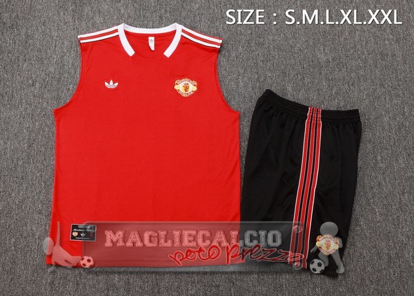 • Set Completo Maglia Senza Maniche Formazione Manchester United 2025 2026 Rosso Nero Giallo