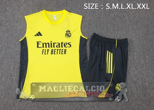 • Set Completo Maglia Senza Maniche Formazione Real Madrid 2025 2026 Giallo Grigio