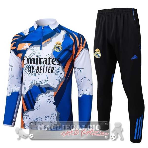Set Completo Felpa Allenamento Formazione Bambino Real Madrid 2025 2026 Blu Bianco Nero