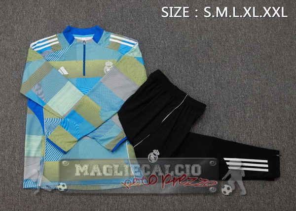 Set Completo Felpa Allenamento Formazione Bambino Real Madrid 2025 2026 Blu Giallo Nero