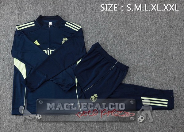 Set Completo Felpa Allenamento Formazione Bambino Real Madrid 2025 2026 Blu Navy