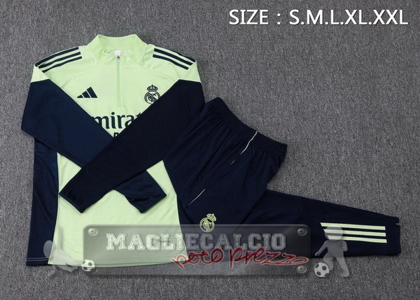 Set Completo Felpa Allenamento Formazione Bambino Real Madrid 2025 2026 Verde Luce
