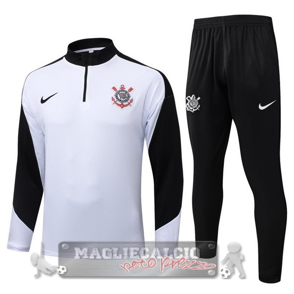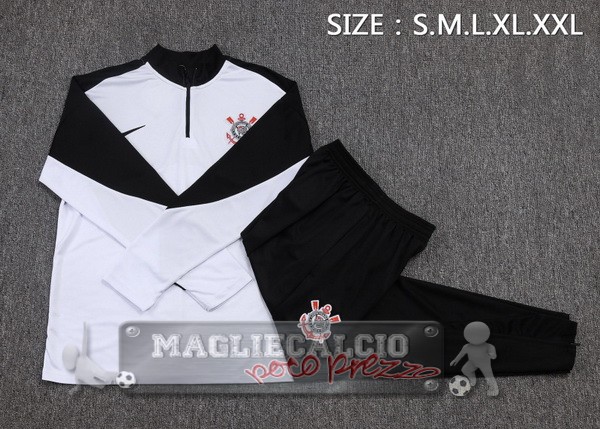 Set Completo Felpa Allenamento Formazione Corinthians Paulista 2025 2026 Bianco Nero