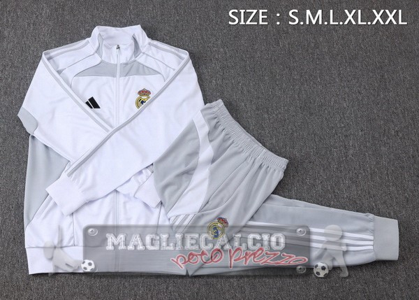 Set Completo Lunga Zip Giacca Bambino Real Madrid 2025 2026 Bianco I Grigio
