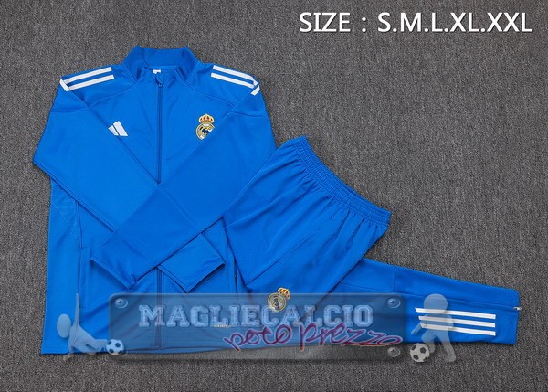 Set Completo Lunga Zip Giacca Bambino Real Madrid 2025 2026 Blu Bianco